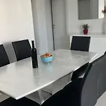 Lägenheten erbjuder möjligheter för självhushållning, inklusive ett komplett kök, matplats och utomhusmatplats för gästerna.